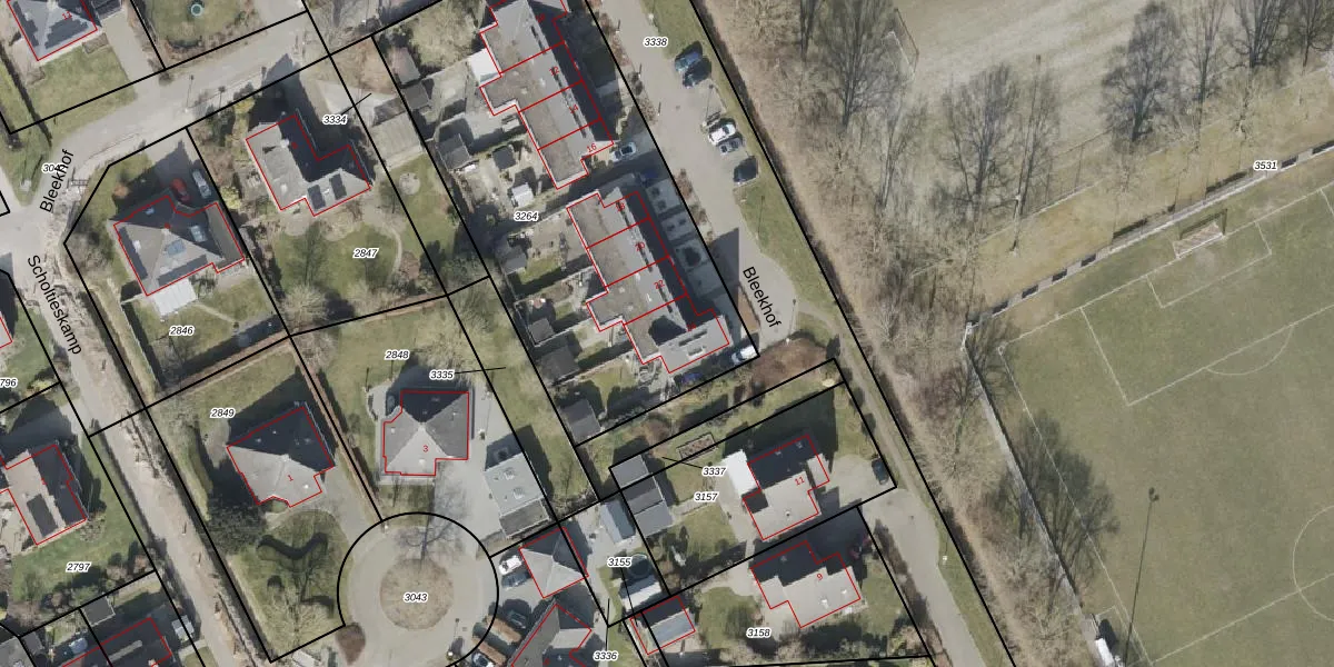 Het perceel waarop Bleekhof 24 staat heeft een oppervlakte van 2144 m². Dit is een zeer groot perceel. De perceeloppervlakte wordt geregistreerd door het Kadaster. Gedetailleerde informatie over de maten van dit perceel kunt u vinden in het rapport Kadastrale kaart met maatvoering van Bleekhof 24.
