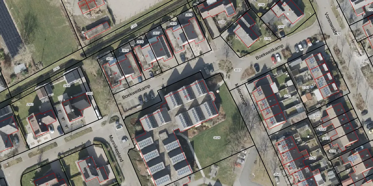 Het perceel waarop Boekweitkamp 40 staat heeft een oppervlakte van 2777 m². Dit is een zeer groot perceel. De perceeloppervlakte wordt geregistreerd door het Kadaster. Gedetailleerde informatie over de maten van dit perceel kunt u vinden in het rapport Kadastrale kaart met maatvoering van Boekweitkamp 40.