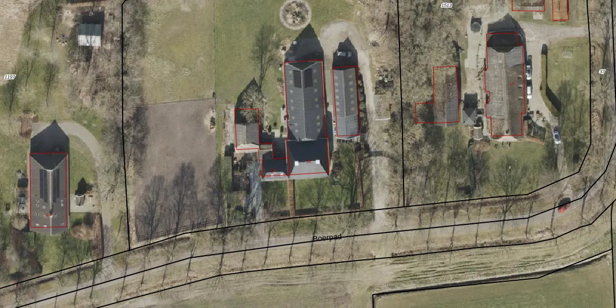 Het perceel waarop Boerpad 18 staat heeft een oppervlakte van 5,4 ha. Dit is een zeer groot perceel. De perceeloppervlakte wordt geregistreerd door het Kadaster. Gedetailleerde informatie over de maten van dit perceel kunt u vinden in het rapport Kadastrale kaart met maatvoering van Boerpad 18.