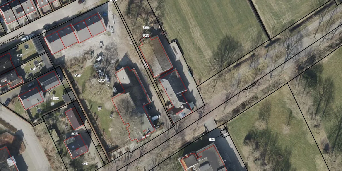 Het perceel waarop Dijkhuizen 115 staat heeft een oppervlakte van 1550 m². Dit is een zeer groot perceel. De perceeloppervlakte wordt geregistreerd door het Kadaster. Gedetailleerde informatie over de maten van dit perceel kunt u vinden in het rapport Kadastrale kaart met maatvoering van Dijkhuizen 115.