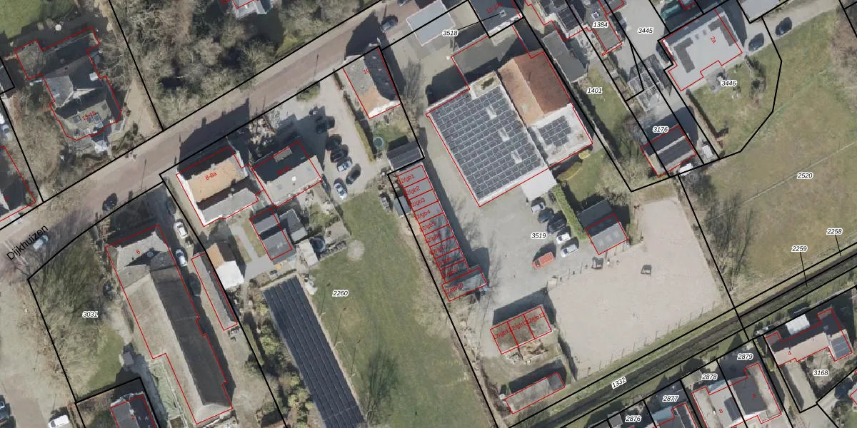 Het perceel waarop Dijkhuizen 12-gb4 staat heeft een oppervlakte van 4513 m². Dit is een zeer groot perceel. De perceeloppervlakte wordt geregistreerd door het Kadaster. Gedetailleerde informatie over de maten van dit perceel kunt u vinden in het rapport Kadastrale kaart met maatvoering van Dijkhuizen 12-gb4.