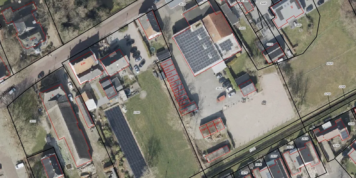 Het perceel waarop het adres ligt is RNW00-F-3519. De afkorting 'RNW00' staat voor kadastrale gemeente Ruinerwold. De gemiddelde perceelgrootte in Ruinerwold is 1,2 ha. Dit perceel is kleiner: de perceeloppervlakte bedraagt 4513 m². Het kleinste perceel in de kadastrale gemeente is 1 m² groot. De grootste perceeloppervlakte is 41,4 ha. Op het perceel zijn 14 adressen aanwezig. De huidige grenzen van het perceel zijn digitaal in de Basisregistratie Kadaster (BRK) geregistreerd op 07-11-2023.