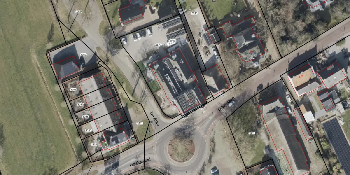 Het perceel waarop Dijkhuizen 7-c staat heeft een oppervlakte van 1728 m². Dit is een zeer groot perceel. De perceeloppervlakte wordt geregistreerd door het Kadaster. Gedetailleerde informatie over de maten van dit perceel kunt u vinden in het rapport Kadastrale kaart met maatvoering van Dijkhuizen 7-c.
