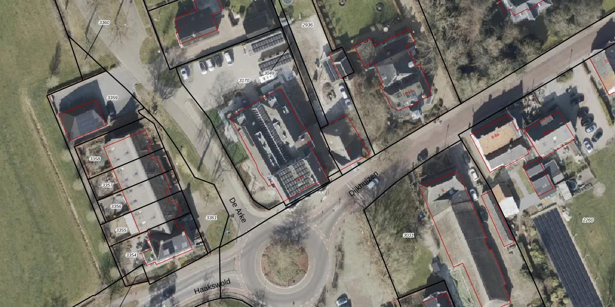 Het perceel waarop Dijkhuizen 7-h staat heeft een oppervlakte van 1728 m². Dit is een zeer groot perceel. De perceeloppervlakte wordt geregistreerd door het Kadaster. Gedetailleerde informatie over de maten van dit perceel kunt u vinden in het rapport Kadastrale kaart met maatvoering van Dijkhuizen 7-h.