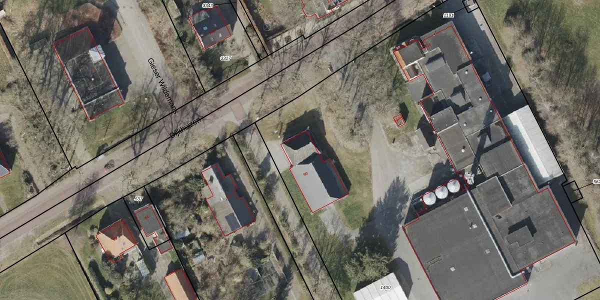 Het perceel waarop Dijkhuizen 90 staat heeft een oppervlakte van 8585 m². Dit is een zeer groot perceel. De perceeloppervlakte wordt geregistreerd door het Kadaster. Gedetailleerde informatie over de maten van dit perceel kunt u vinden in het rapport Kadastrale kaart met maatvoering van Dijkhuizen 90.