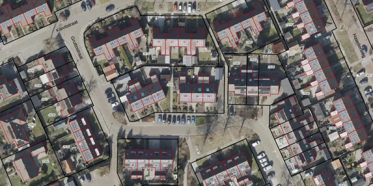 Het perceel waarop Gruttostraat 30 staat heeft een oppervlakte van 1442 m². Dit is een zeer groot perceel. De perceeloppervlakte wordt geregistreerd door het Kadaster. Gedetailleerde informatie over de maten van dit perceel kunt u vinden in het rapport Kadastrale kaart met maatvoering van Gruttostraat 30.