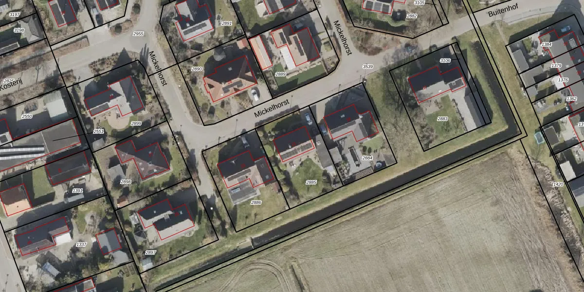 Het perceel waarop Mickelhorst 21 staat heeft een oppervlakte van 600 m². Dit is een groot perceel. De perceeloppervlakte wordt geregistreerd door het Kadaster. Gedetailleerde informatie over de maten van dit perceel kunt u vinden in het rapport Kadastrale kaart met maatvoering van Mickelhorst 21.