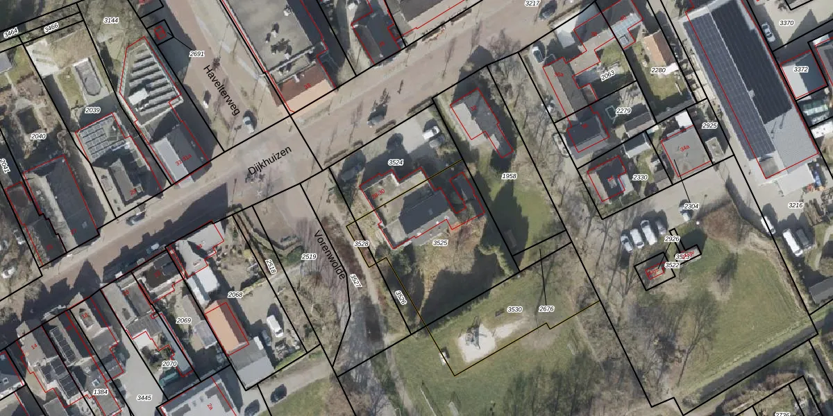 Het perceel waarop het adres ligt is RNW00-F-3525. De afkorting 'RNW00' staat voor kadastrale gemeente Ruinerwold. Het perceel is kleiner dan gemiddeld in Ruinerwold. Het perceel is 835 m² groot, terwijl het gemiddelde ligt op 1,2 ha. De grootste perceeloppervlakte in de kadastrale gemeente is 41,4 ha. De kleinste oppervlakte bedraagt 1 m². Op het perceel liggen in totaal 15 adressen. In de Basisregistratie Kadaster (BRK) werden de grenzen van het perceel geregistreerd op 11-12-2023.
