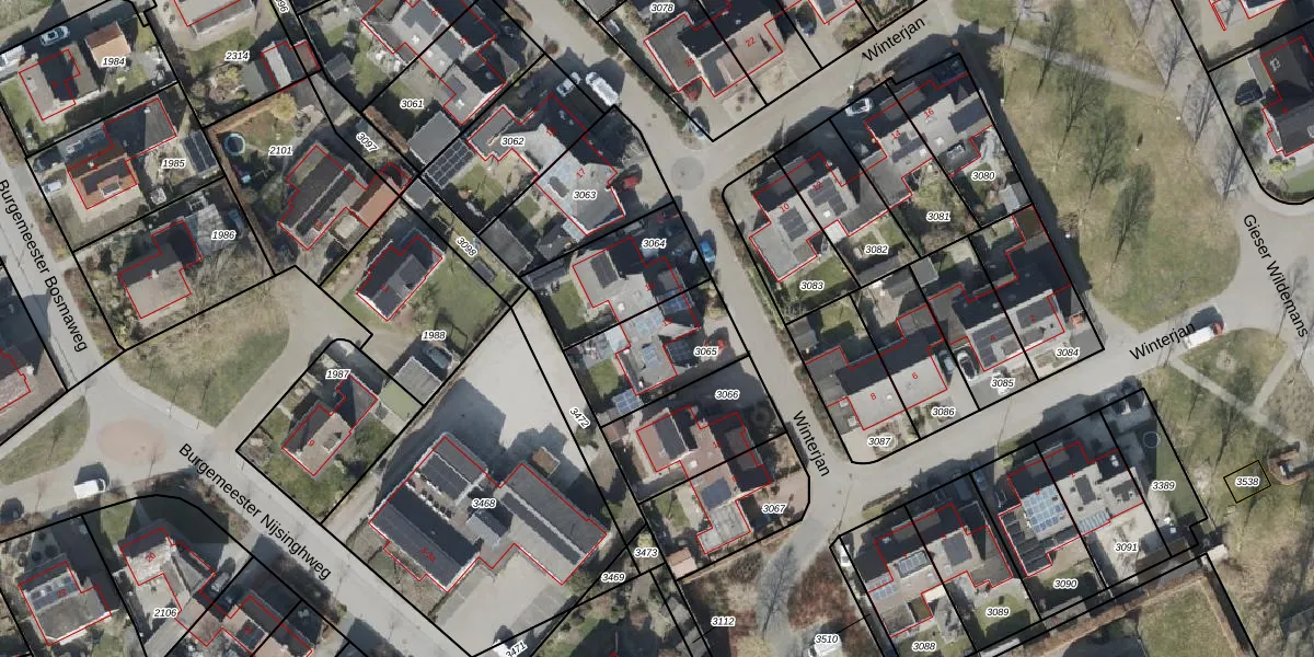 Gebruik de zoekbalk of klik op een perceel voor informatie over de adressen binnen dit perceel.