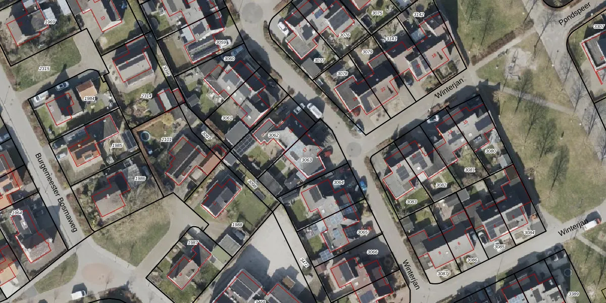 Gebruik de zoekbalk of klik op een perceel voor informatie over de adressen binnen dit perceel.