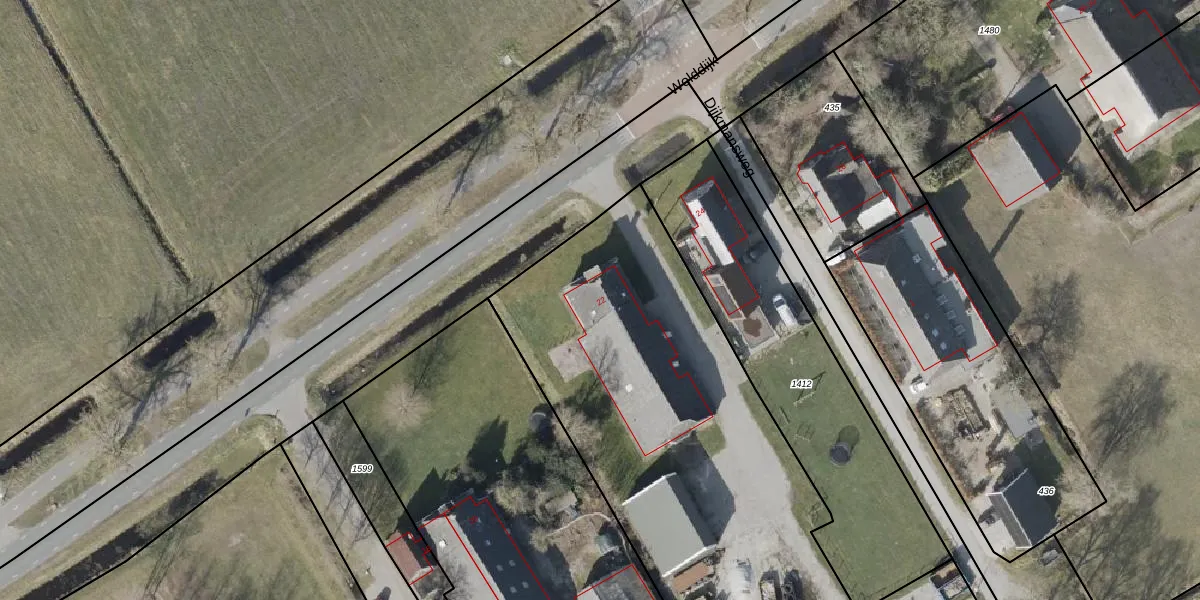 Het perceel waarop Wolddijk 22 staat heeft een oppervlakte van 3739 m². Dit is een zeer groot perceel. De perceeloppervlakte wordt geregistreerd door het Kadaster. Gedetailleerde informatie over de maten van dit perceel kunt u vinden in het rapport Kadastrale kaart met maatvoering van Wolddijk 22.