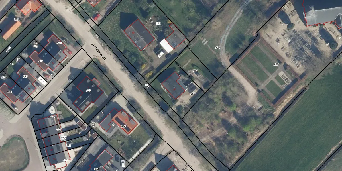 Het perceel waarop Achterweg 40 staat heeft een oppervlakte van 550 m². Dit is een groot perceel. De perceeloppervlakte wordt geregistreerd door het Kadaster. Gedetailleerde informatie over de maten van dit perceel kunt u vinden in het rapport Kadastrale kaart met maatvoering van Achterweg 40.