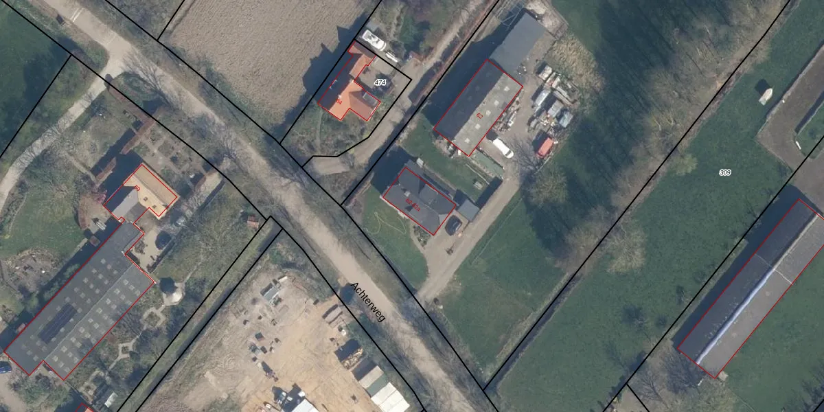 Het perceel waarop Achterweg 62-a staat heeft een oppervlakte van 1,2 ha. Dit is een zeer groot perceel. De perceeloppervlakte wordt geregistreerd door het Kadaster. Gedetailleerde informatie over de maten van dit perceel kunt u vinden in het rapport Kadastrale kaart met maatvoering van Achterweg 62-a.