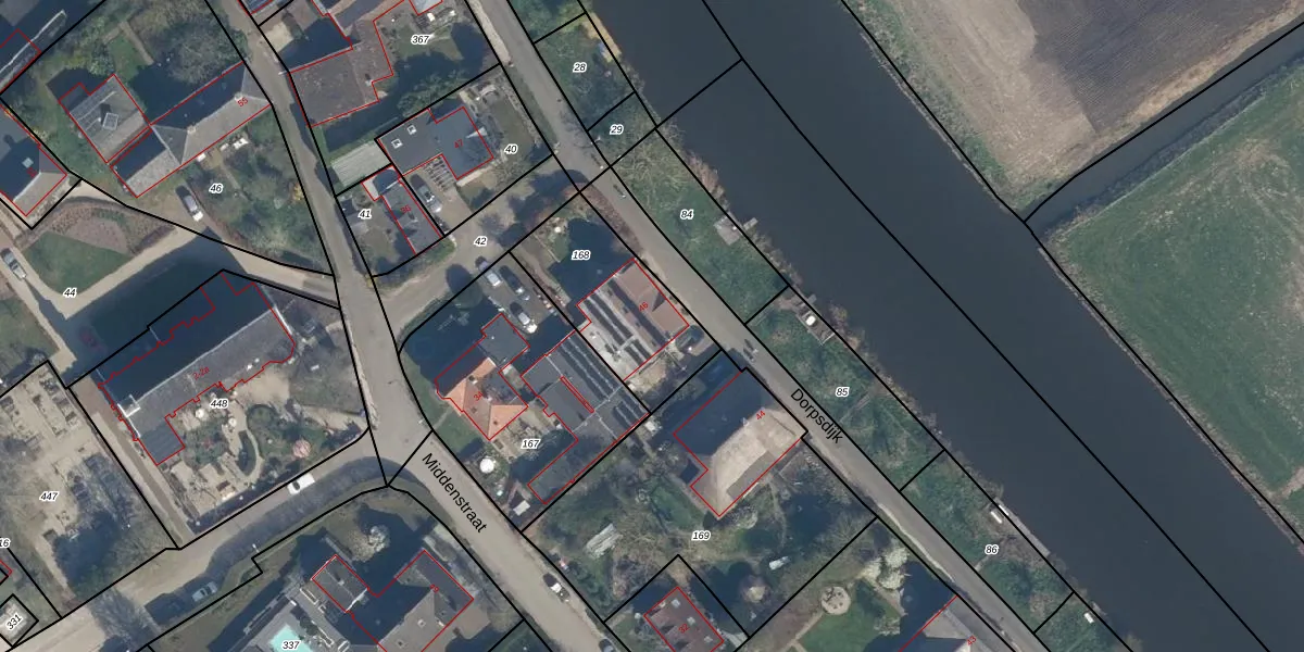 Het perceel waarop Dorpsdijk 46 staat heeft een oppervlakte van 470 m². Dit is een groot perceel. De perceeloppervlakte wordt geregistreerd door het Kadaster. Gedetailleerde informatie over de maten van dit perceel kunt u vinden in het rapport Kadastrale kaart met maatvoering van Dorpsdijk 46.