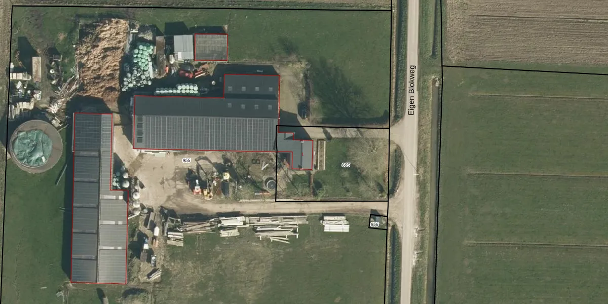 Het perceel waarop Eigen Blokweg 1 staat heeft een oppervlakte van 910 m². Dit is een groot perceel. De perceeloppervlakte wordt geregistreerd door het Kadaster. Gedetailleerde informatie over de maten van dit perceel kunt u vinden in het rapport Kadastrale kaart met maatvoering van Eigen Blokweg 1.