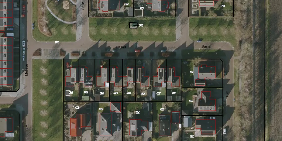 Het perceel waarop Basiel 12 staat heeft een oppervlakte van 326 m². Dit is een groot perceel. De perceeloppervlakte wordt geregistreerd door het Kadaster. Gedetailleerde informatie over de maten van dit perceel kunt u vinden in het rapport Kadastrale kaart met maatvoering van Basiel 12.