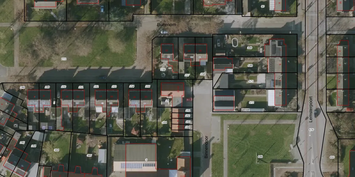 Het perceel waarop Binnendoor 14 staat heeft een oppervlakte van 313 m². Dit is een groot perceel. De perceeloppervlakte wordt geregistreerd door het Kadaster. Gedetailleerde informatie over de maten van dit perceel kunt u vinden in het rapport Kadastrale kaart met maatvoering van Binnendoor 14.