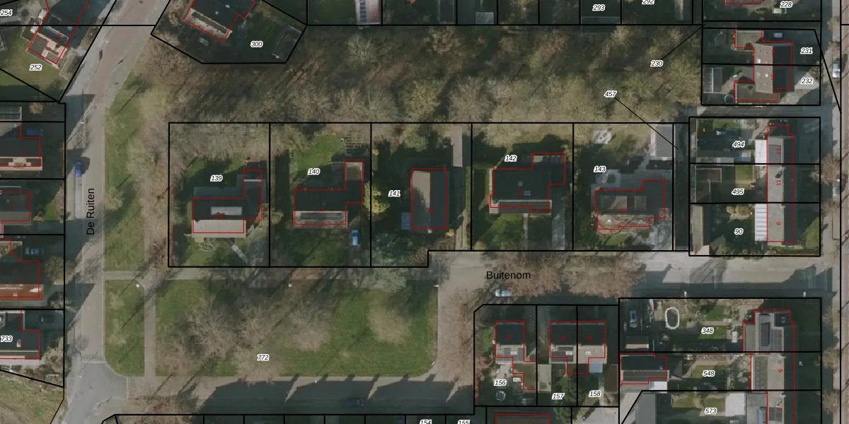 Het perceel waarop Buitenom 19 staat heeft een oppervlakte van 766 m². Dit is een groot perceel. De perceeloppervlakte wordt geregistreerd door het Kadaster. Gedetailleerde informatie over de maten van dit perceel kunt u vinden in het rapport Kadastrale kaart met maatvoering van Buitenom 19.