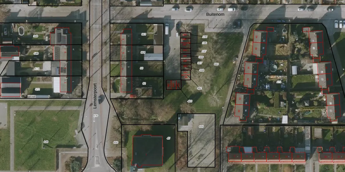 Het perceel waarop Buitenom 28-K staat heeft een oppervlakte van 47 m². Dit is een klein perceel. De perceeloppervlakte wordt geregistreerd door het Kadaster. Gedetailleerde informatie over de maten van dit perceel kunt u vinden in het rapport Kadastrale kaart met maatvoering van Buitenom 28-K.