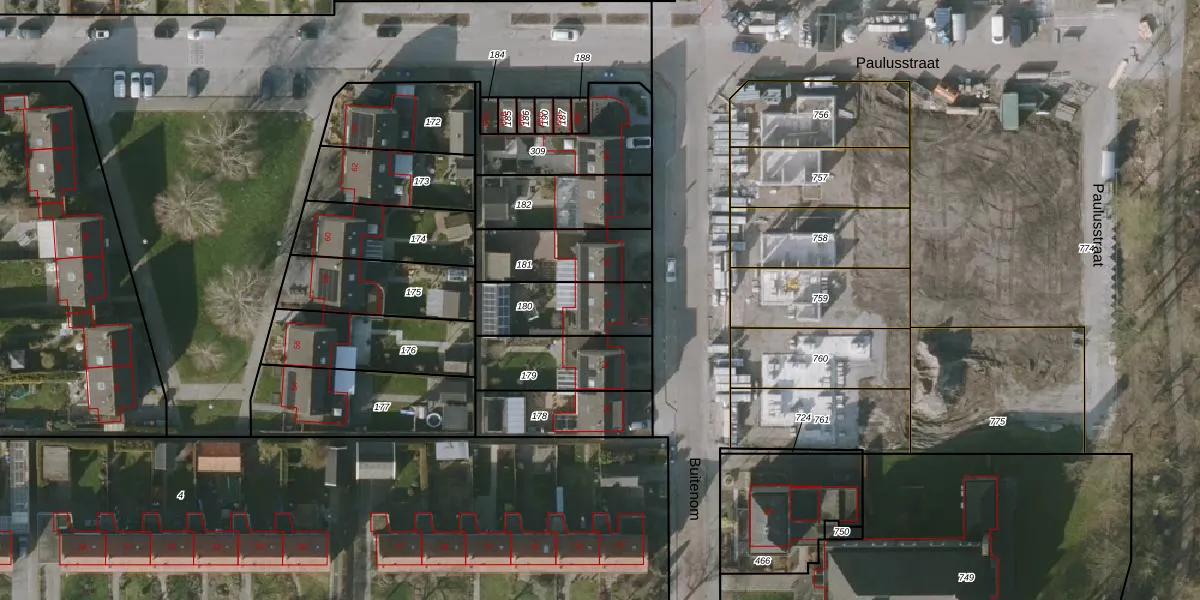 Het perceel waarop Buitenom 72 staat heeft een oppervlakte van 261 m². Dit is een middelgroot perceel. De perceeloppervlakte wordt geregistreerd door het Kadaster. Gedetailleerde informatie over de maten van dit perceel kunt u vinden in het rapport Kadastrale kaart met maatvoering van Buitenom 72.