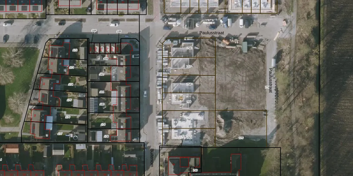 Het perceel waarop Buitenom 77 staat heeft een oppervlakte van 301 m². Dit is een groot perceel. De perceeloppervlakte wordt geregistreerd door het Kadaster. Gedetailleerde informatie over de maten van dit perceel kunt u vinden in het rapport Kadastrale kaart met maatvoering van Buitenom 77.