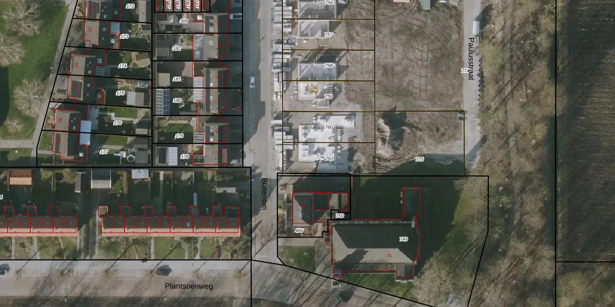 Het perceel waarop Buitenom 83 staat heeft een oppervlakte van 310 m². Dit is een groot perceel. De perceeloppervlakte wordt geregistreerd door het Kadaster. Gedetailleerde informatie over de maten van dit perceel kunt u vinden in het rapport Kadastrale kaart met maatvoering van Buitenom 83.