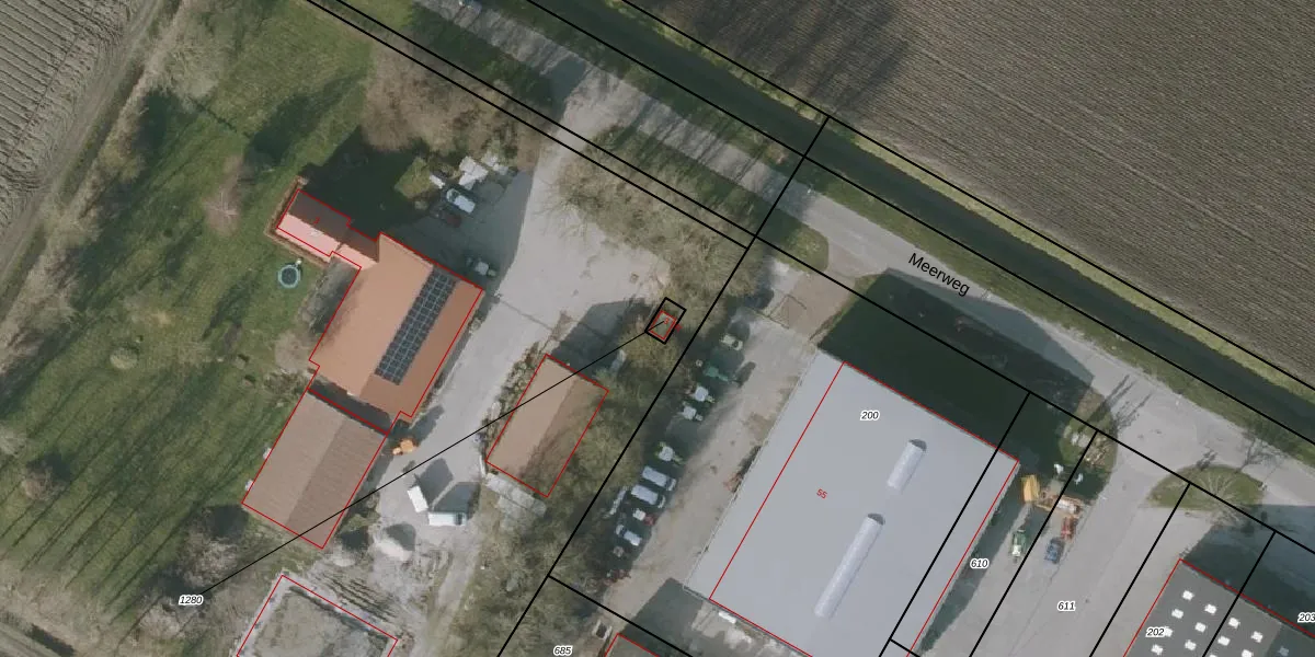 Het adres ligt op het perceel NOP00-F-1280, dat zich in de kadastrale gemeente Noordoostpolder bevindt. Het perceel is kleiner dan gemiddeld in Noordoostpolder. Het perceel is 21 m² groot, terwijl het gemiddelde ligt op 2,1 ha. Het grootste perceel in de kadastrale gemeente is 47,42 km². Het kleinste perceel heeft een oppervlakte van 0 m². Dit is het enige adres dat aanwezig is op het perceel. De laatste wijziging in het de Basisregistratie Kadaster (BRK) was op 28-12-2001.