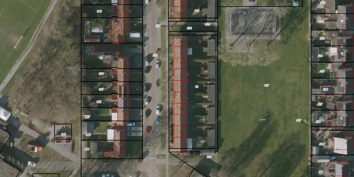 Het perceel waarop Sportweg 41 staat heeft een oppervlakte van 1777 m². Dit is een zeer groot perceel. De perceeloppervlakte wordt geregistreerd door het Kadaster. Gedetailleerde informatie over de maten van dit perceel kunt u vinden in het rapport Kadastrale kaart met maatvoering van Sportweg 41.