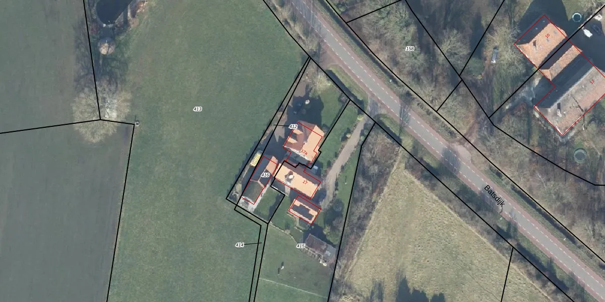 Batsdijk 17-a is gelegen op kadastraal perceel RLO00W416. Deze kadastrale aanduiding is uniek en wordt gebruikt door het Kadaster om eigendomsrechten en andere zakelijke rechten vast te leggen. Het perceel maakt onderdeel uit van de kadastrale gemeente Ruurlo.