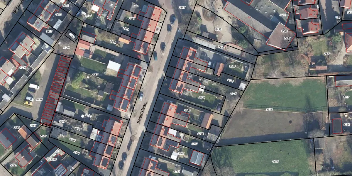 Gebruik de zoekbalk of klik op een perceel voor informatie over de adressen binnen dit perceel.