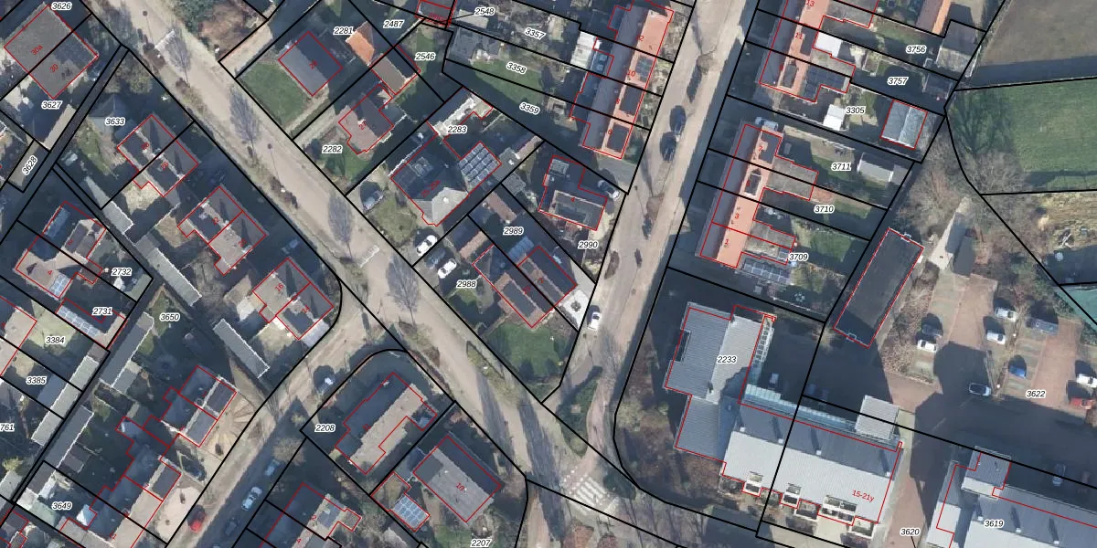 Gebruik de zoekbalk of klik op een perceel voor informatie over de adressen binnen dit perceel.