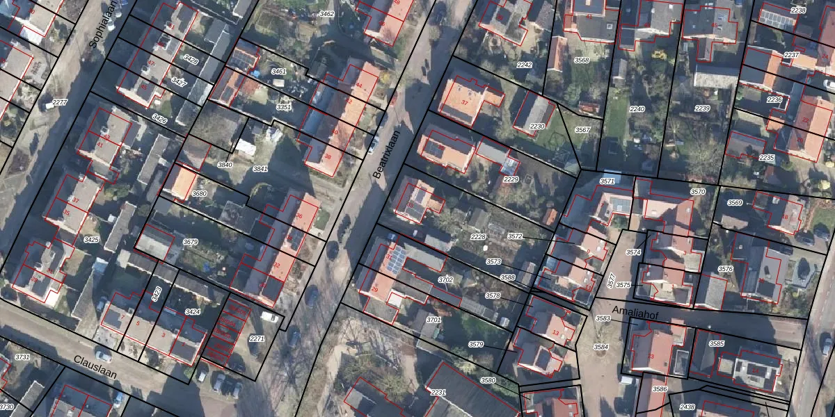 Het perceel waarop Beatrixlaan 33 staat heeft een oppervlakte van 643 m². Dit is een groot perceel. De perceeloppervlakte wordt geregistreerd door het Kadaster. Gedetailleerde informatie over de maten van dit perceel kunt u vinden in het rapport Kadastrale kaart met maatvoering van Beatrixlaan 33.