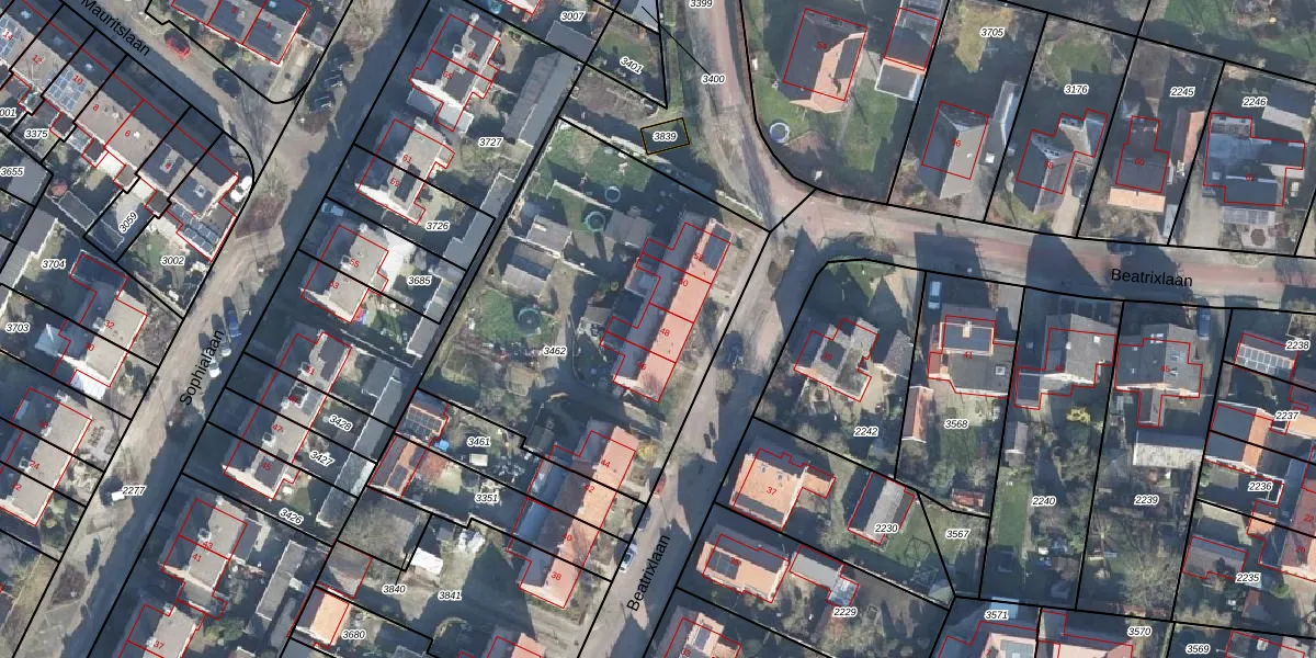 Het perceel waarop Beatrixlaan 48 staat heeft een oppervlakte van 1743 m². Dit is een zeer groot perceel. De perceeloppervlakte wordt geregistreerd door het Kadaster. Gedetailleerde informatie over de maten van dit perceel kunt u vinden in het rapport Kadastrale kaart met maatvoering van Beatrixlaan 48.