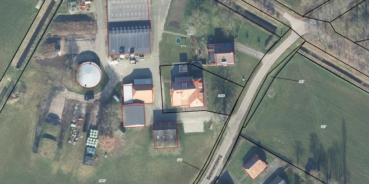 Beemersteeg 3-b is gelegen op kadastraal perceel RLO00T1406. Deze kadastrale aanduiding is uniek en wordt gebruikt door het Kadaster om eigendomsrechten en andere zakelijke rechten vast te leggen. Het perceel maakt onderdeel uit van de kadastrale gemeente Ruurlo.