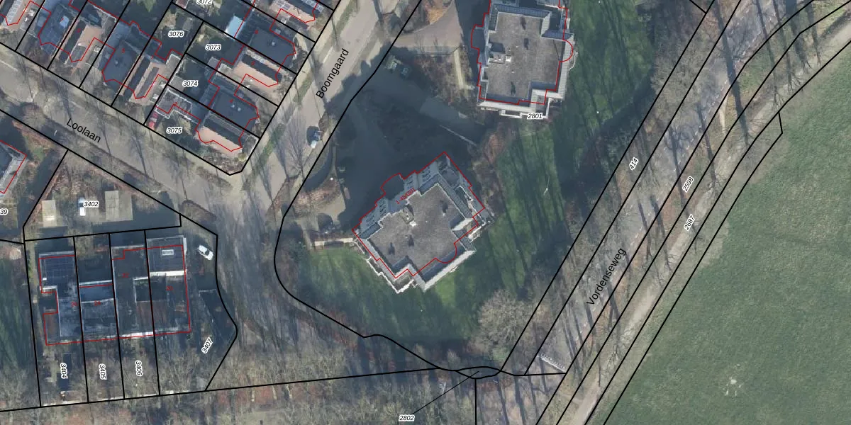 Het perceel waarop Boomgaard 13 staat heeft een oppervlakte van 6303 m². Dit is een zeer groot perceel. De perceeloppervlakte wordt geregistreerd door het Kadaster. Gedetailleerde informatie over de maten van dit perceel kunt u vinden in het rapport Kadastrale kaart met maatvoering van Boomgaard 13.