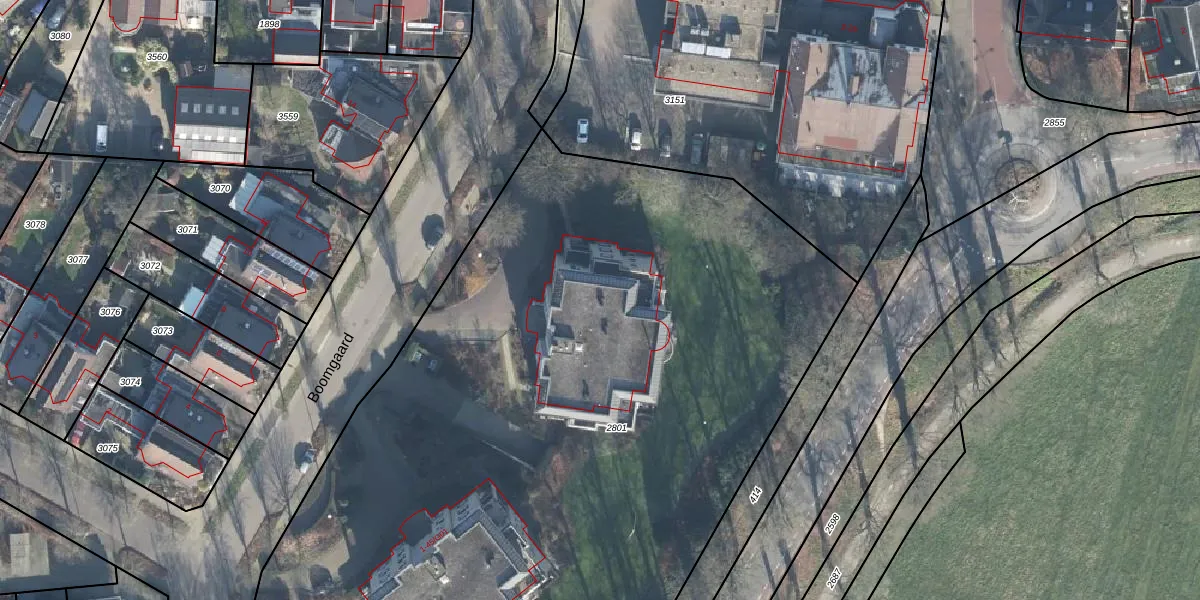 Het perceel waarop Boomgaard 31 staat heeft een oppervlakte van 6303 m². Dit is een zeer groot perceel. De perceeloppervlakte wordt geregistreerd door het Kadaster. Gedetailleerde informatie over de maten van dit perceel kunt u vinden in het rapport Kadastrale kaart met maatvoering van Boomgaard 31.