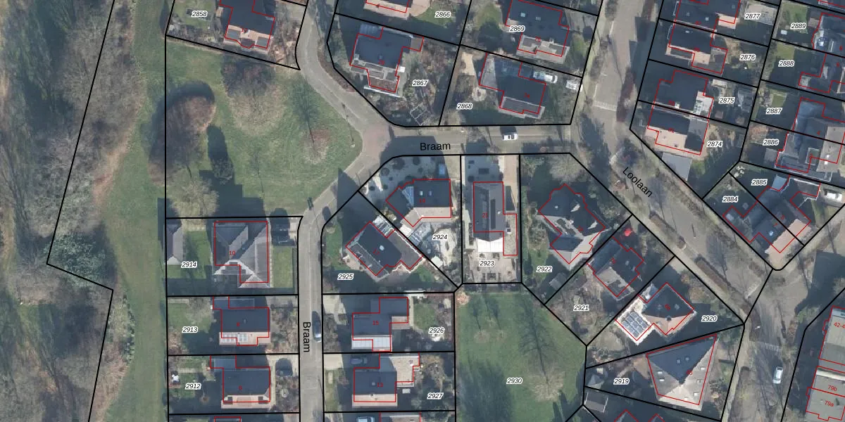 Gebruik de zoekbalk of klik op een perceel voor informatie over de adressen binnen dit perceel.