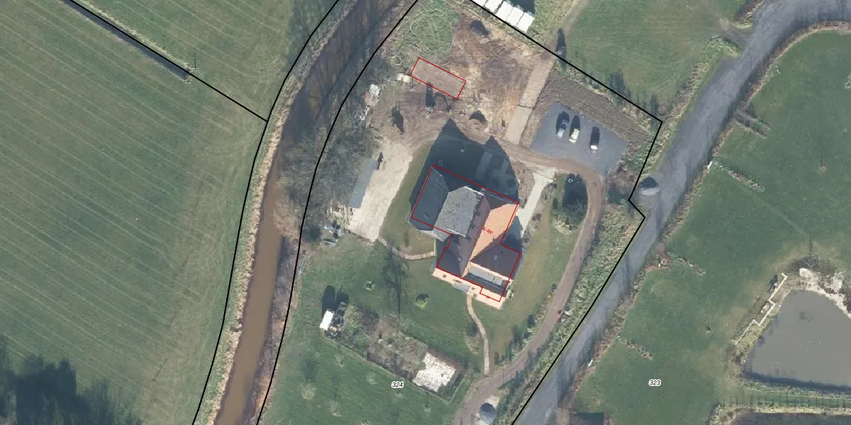 Het adres is gelegen op perceel 324 in de sectie U en de kadastrale gemeente Ruurlo. De kadastrale aanduiding is aldus RLO00-U-324. Het perceel is met 8410 m² relatief groot. Het gemiddelde ligt in de kadastrale gemeente Ruurlo op 7515,46 m². Het grootste perceel in de kadastrale gemeente is 36,0 ha. Het kleinste perceel heeft een oppervlakte van 1 m². Op het perceel liggen in totaal 6 adressen. In de Basisregistratie Kadaster (BRK) werden de grenzen van het perceel geregistreerd op 04-10-2024.