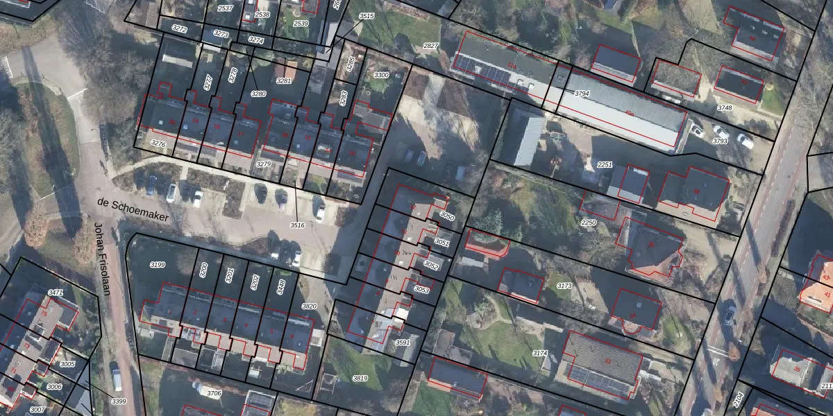 Het perceel waarop de Schoemaker 12 staat heeft een oppervlakte van 203 m². Dit is een middelgroot perceel. De perceeloppervlakte wordt geregistreerd door het Kadaster. Gedetailleerde informatie over de maten van dit perceel kunt u vinden in het rapport Kadastrale kaart met maatvoering van de Schoemaker 12.