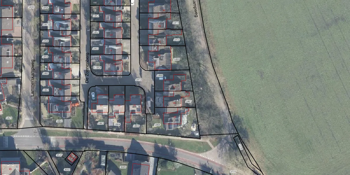 Gebruik de zoekbalk of klik op een perceel voor informatie over de adressen binnen dit perceel.