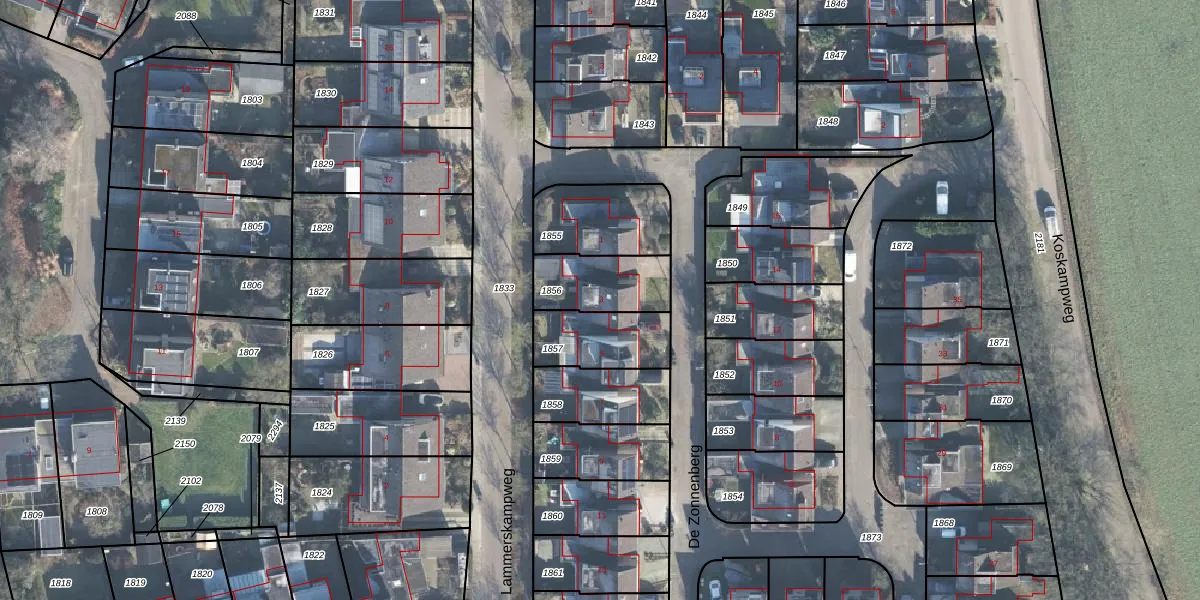 Gebruik de zoekbalk of klik op een perceel voor informatie over de adressen binnen dit perceel.