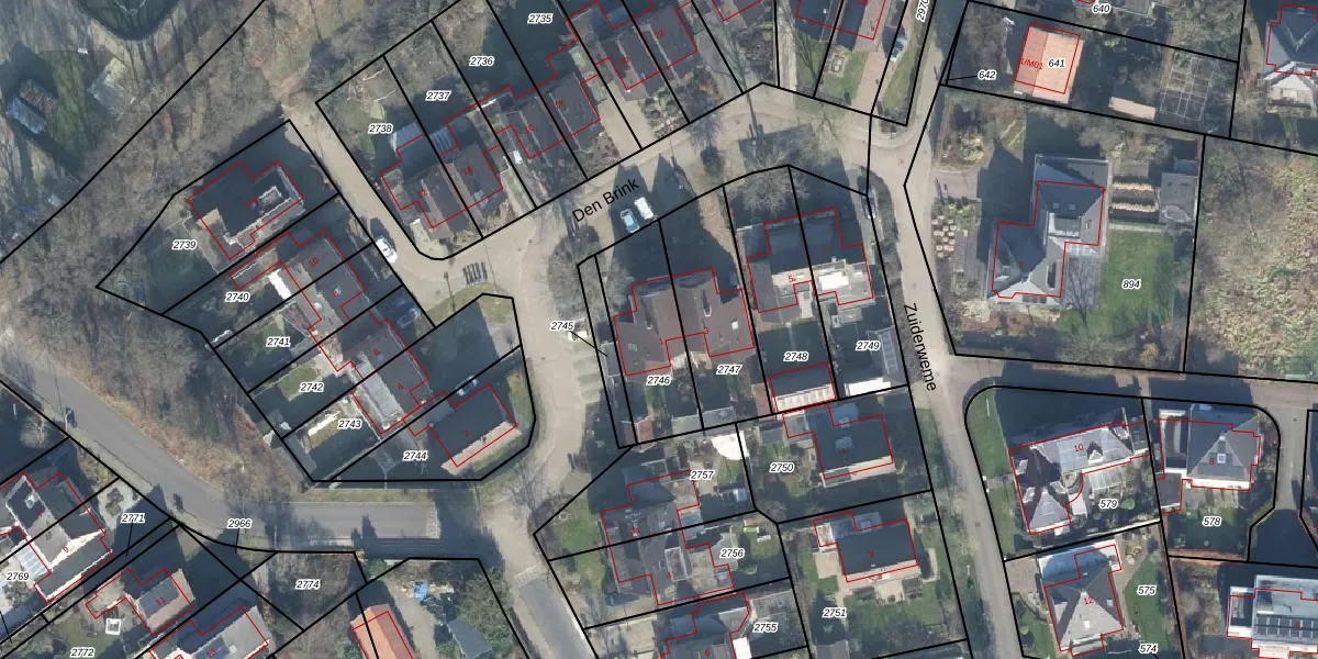 Den Brink 1 is gelegen op kadastraal perceel RLO00K2746. Deze kadastrale aanduiding is uniek en wordt gebruikt door het Kadaster om eigendomsrechten en andere zakelijke rechten vast te leggen. Het perceel maakt onderdeel uit van de kadastrale gemeente Ruurlo.