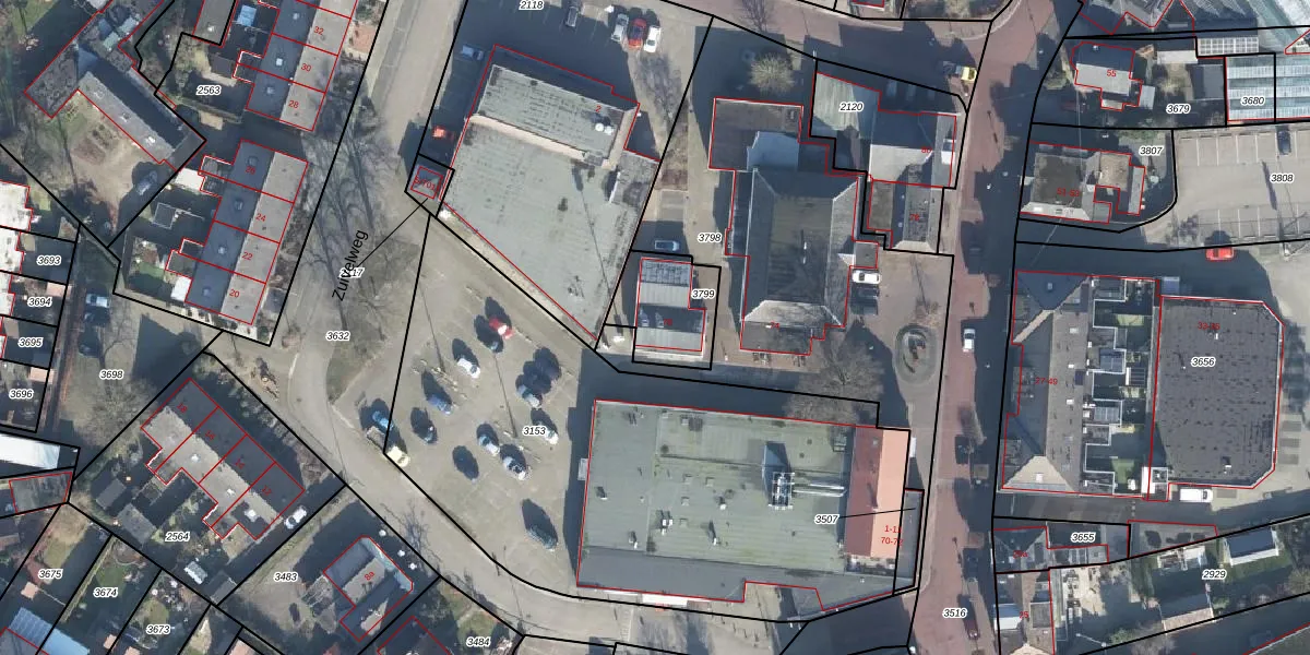 Gebruik de zoekbalk of klik op een perceel voor informatie over de adressen binnen dit perceel.