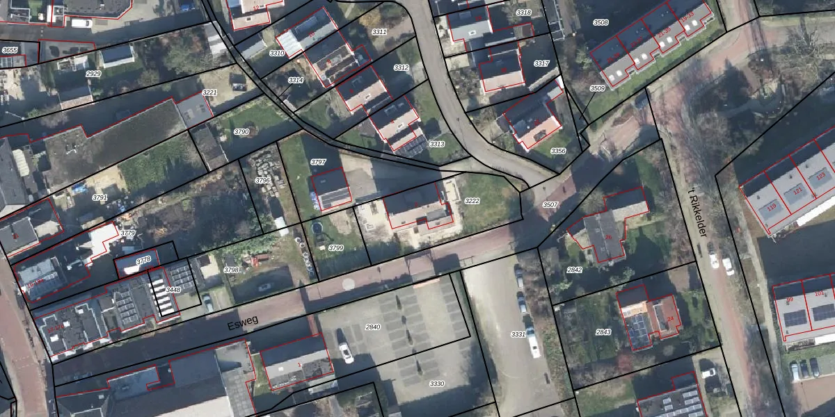 Esweg 2 is gelegen op kadastraal perceel RLO00B3222. Deze kadastrale aanduiding is uniek en wordt gebruikt door het Kadaster om eigendomsrechten en andere zakelijke rechten vast te leggen. Het perceel maakt onderdeel uit van de kadastrale gemeente Ruurlo.