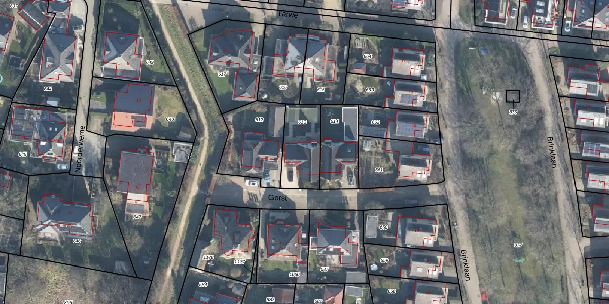 Het perceel waarop Gerst 3 staat heeft een oppervlakte van 343 m². Dit is een groot perceel. De perceeloppervlakte wordt geregistreerd door het Kadaster. Gedetailleerde informatie over de maten van dit perceel kunt u vinden in het rapport Kadastrale kaart met maatvoering van Gerst 3.