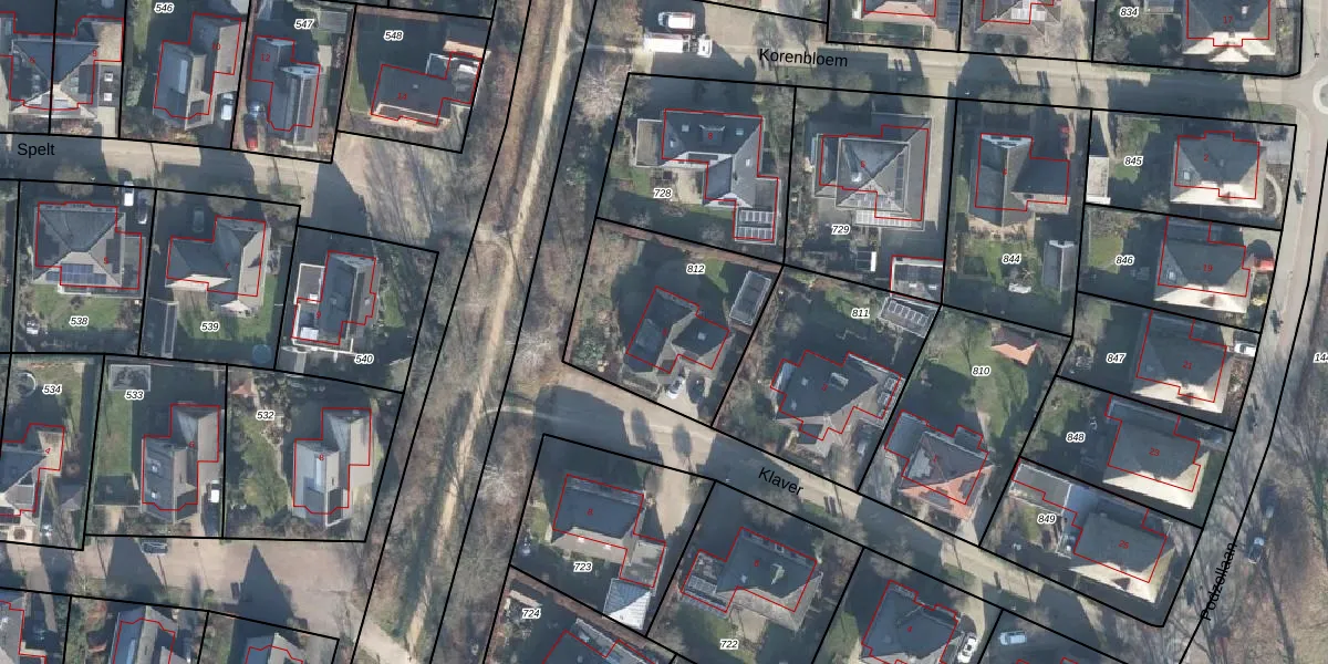 Het perceel waarop Klaver 5 staat heeft een oppervlakte van 654 m². Dit is een groot perceel. De perceeloppervlakte wordt geregistreerd door het Kadaster. Gedetailleerde informatie over de maten van dit perceel kunt u vinden in het rapport Kadastrale kaart met maatvoering van Klaver 5.