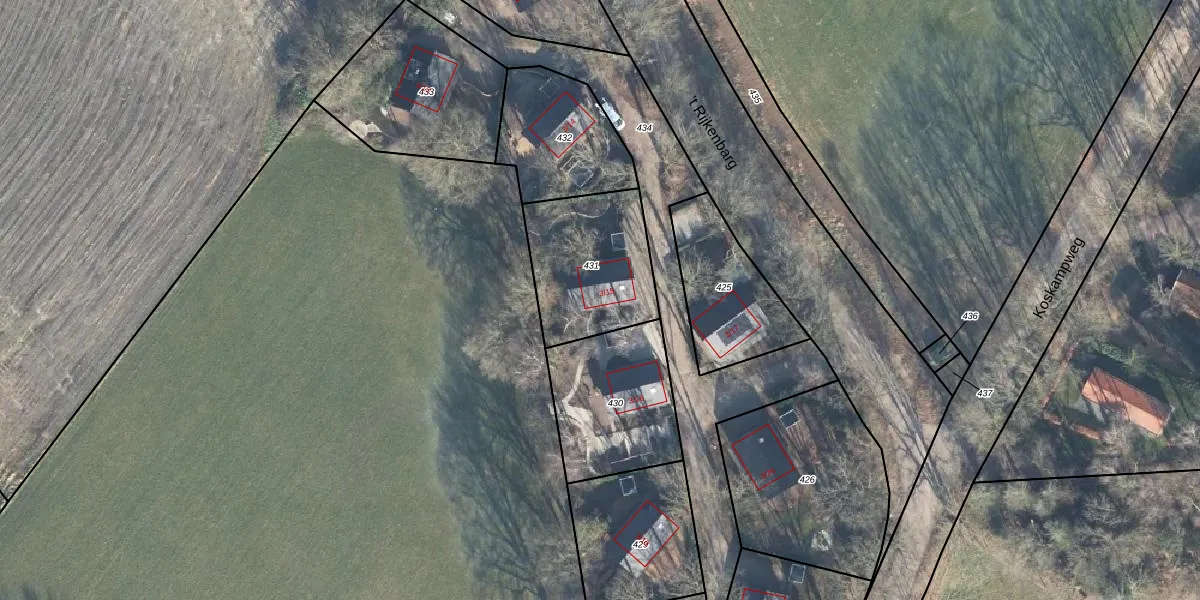 Koskampweg 3-15 is gelegen op kadastraal perceel RLO00R431. Deze kadastrale aanduiding is uniek en wordt gebruikt door het Kadaster om eigendomsrechten en andere zakelijke rechten vast te leggen. Het perceel maakt onderdeel uit van de kadastrale gemeente Ruurlo.