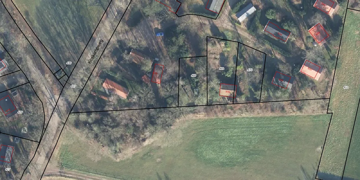 Koskampweg 3-30 is gelegen op kadastraal perceel RLO00R468. Deze kadastrale aanduiding is uniek en wordt gebruikt door het Kadaster om eigendomsrechten en andere zakelijke rechten vast te leggen. Het perceel maakt onderdeel uit van de kadastrale gemeente Ruurlo.