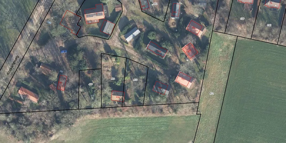 Het perceel waarop Koskampweg 3-44 staat heeft een oppervlakte van 468 m². Dit is een groot perceel. De perceeloppervlakte wordt geregistreerd door het Kadaster. Gedetailleerde informatie over de maten van dit perceel kunt u vinden in het rapport Kadastrale kaart met maatvoering van Koskampweg 3-44.