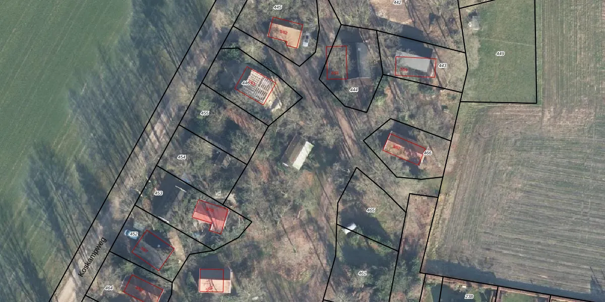 Koskampweg 3-71 is gelegen op kadastraal perceel RLO00R467. Deze kadastrale aanduiding is uniek en wordt gebruikt door het Kadaster om eigendomsrechten en andere zakelijke rechten vast te leggen. Het perceel maakt onderdeel uit van de kadastrale gemeente Ruurlo.